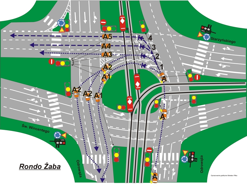 Ponizej przedstawiamy zdjęcia przedstawiające najtrudniejsze skrzyżowania, trudne miejsca które występują na egzaminie w WORD Warszawa ul. Odlewnicza 7. Mamy nadzieję, że taka forma przedstawienia ułatwi kursantom przygotowanie się do egzaminu.